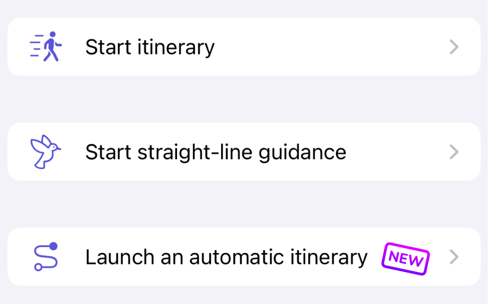 ⚠️ Automatic itineraries are not yet a full replacement for prepared routes: if no pedestrian map is available for the requested area, a route cannot be generated automatically.
